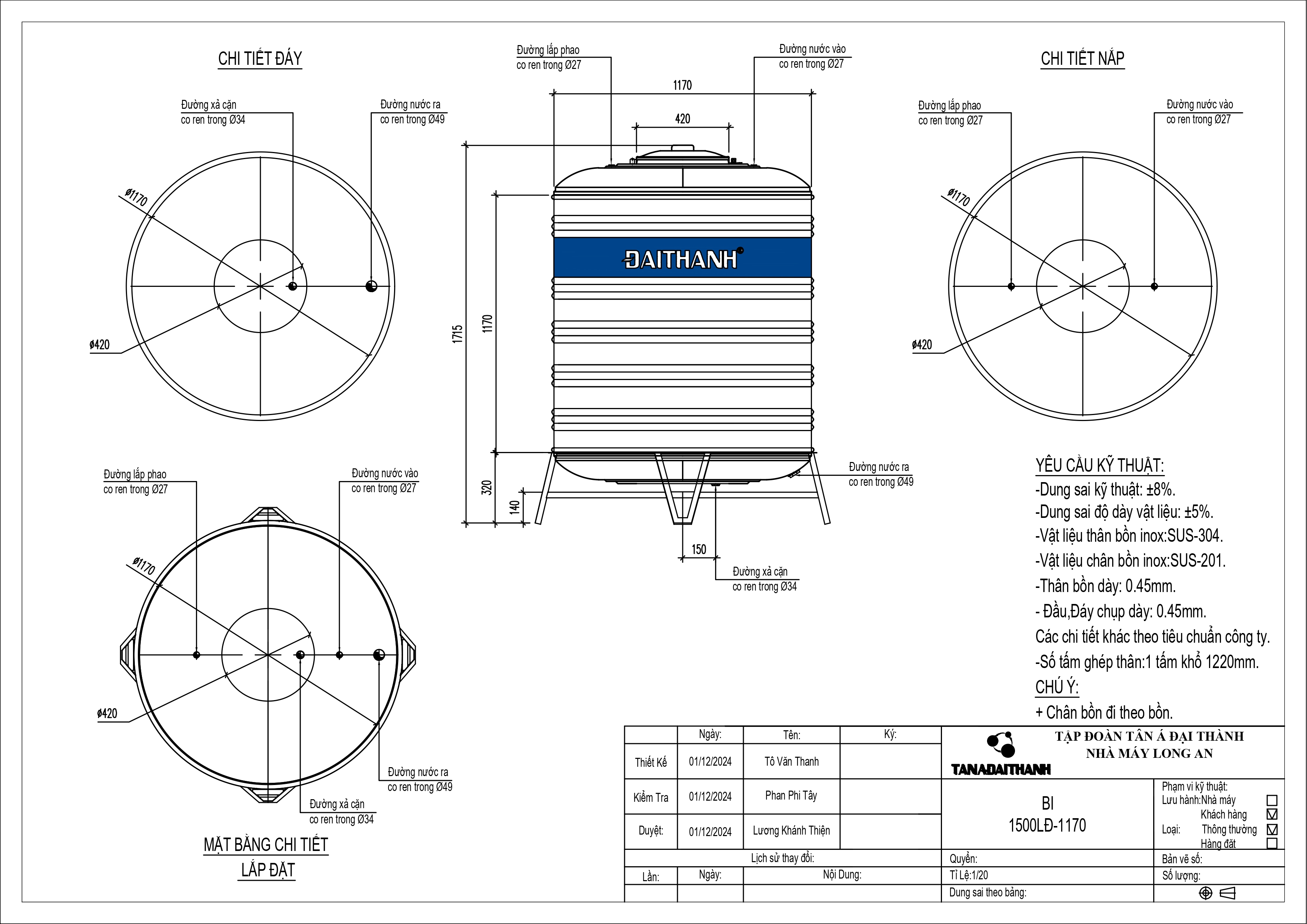 BỒN INOX ĐẠI THÀNH 1.500L ĐỨNG
