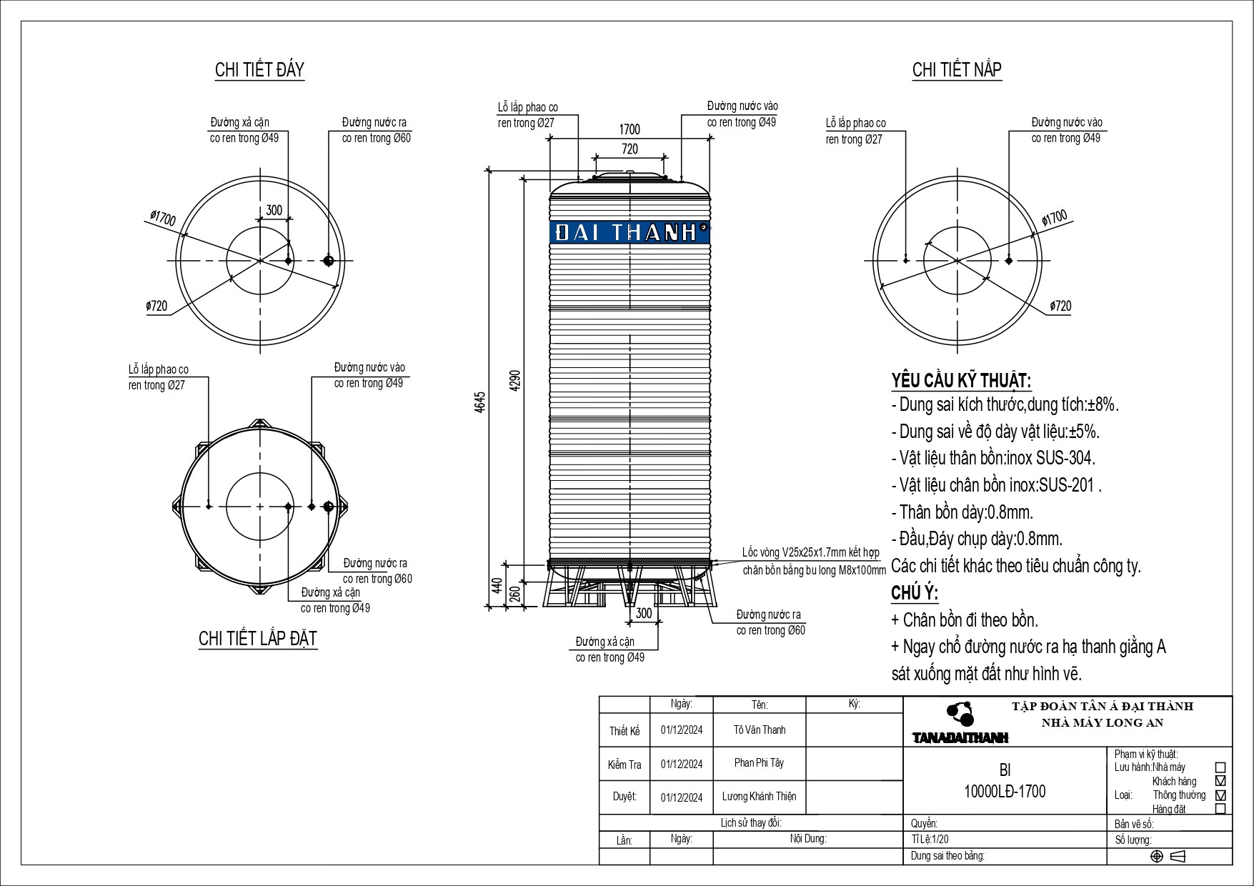 BỒN INOX ĐẠI THÀNH 10.000L ĐỨNG