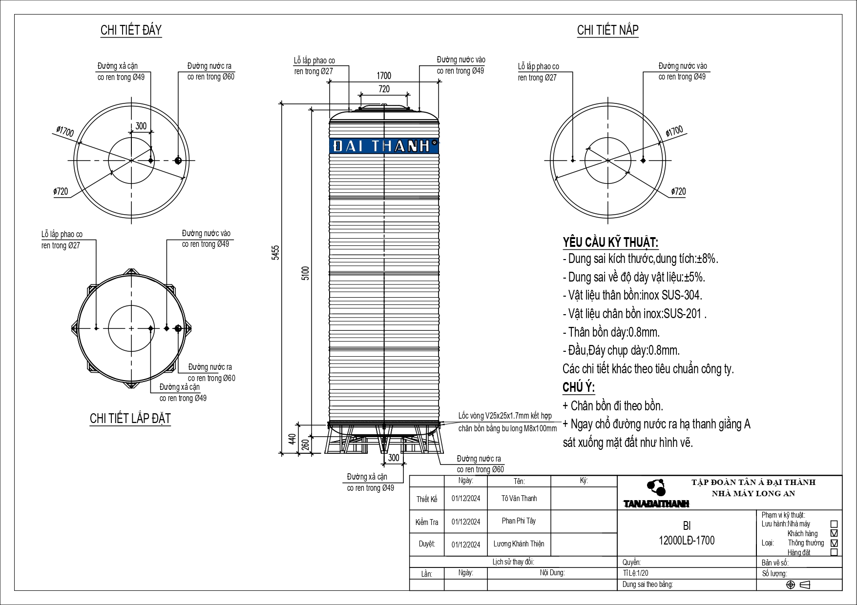 Bồn nước Inox công nghiệp Đại Thành thuộc thương hiệu Tân Á Đại Thành – dẫn đầu thị trường bồn chứa Việt Nam, được đa số các doanh nghiệp & công trình, dự án,… ưa chuộng tin dùng. Đáp ứng tiêu chuẩn quốc tế ISO 9001:2015 và tuân thủ quy chuẩn Việt Nam QCVN 12-3:2011/BYT, sản phẩm nổi bật nhờ: