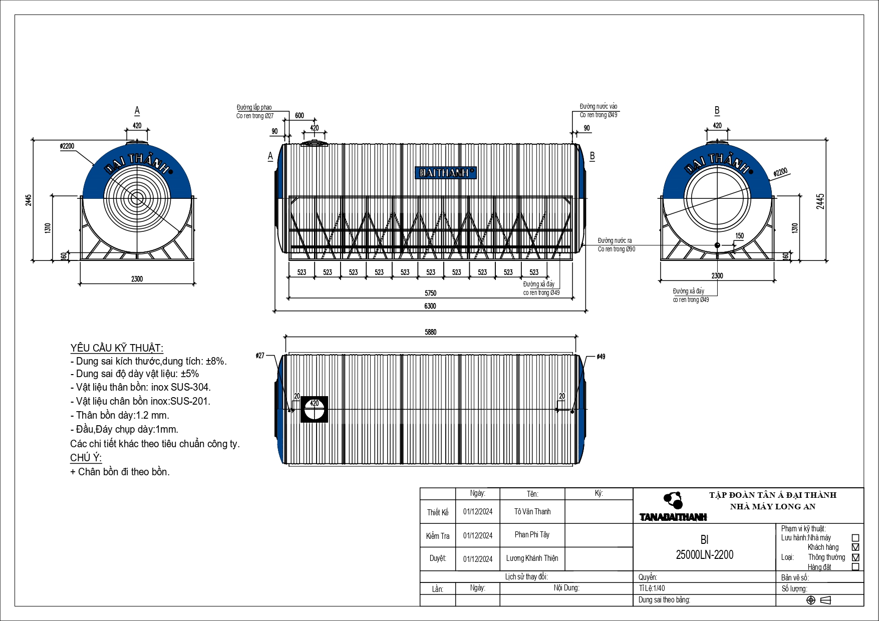 Bồn nước Inox công nghiệp Đại Thành thuộc thương hiệu Tân Á Đại Thành – dẫn đầu thị trường bồn chứa Việt Nam, được đa số các doanh nghiệp & công trình, dự án,… ưa chuộng tin dùng. Đáp ứng tiêu chuẩn quốc tế ISO 9001:2015 và tuân thủ quy chuẩn Việt Nam QCVN 12-3:2011/BYT, sản phẩm nổi bật nhờ: