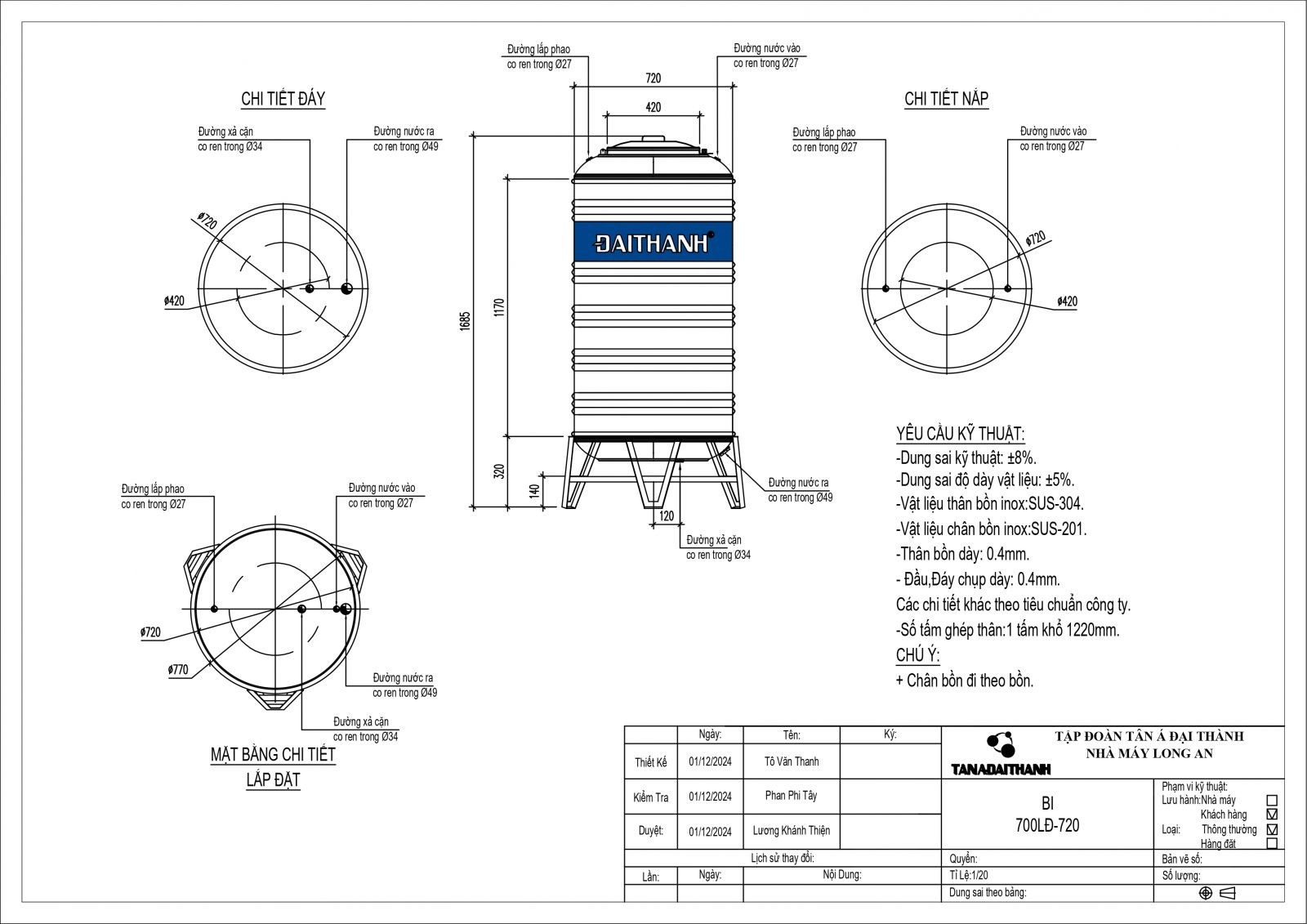 BỒN INOX ĐẠI THÀNH 700L ĐỨNG