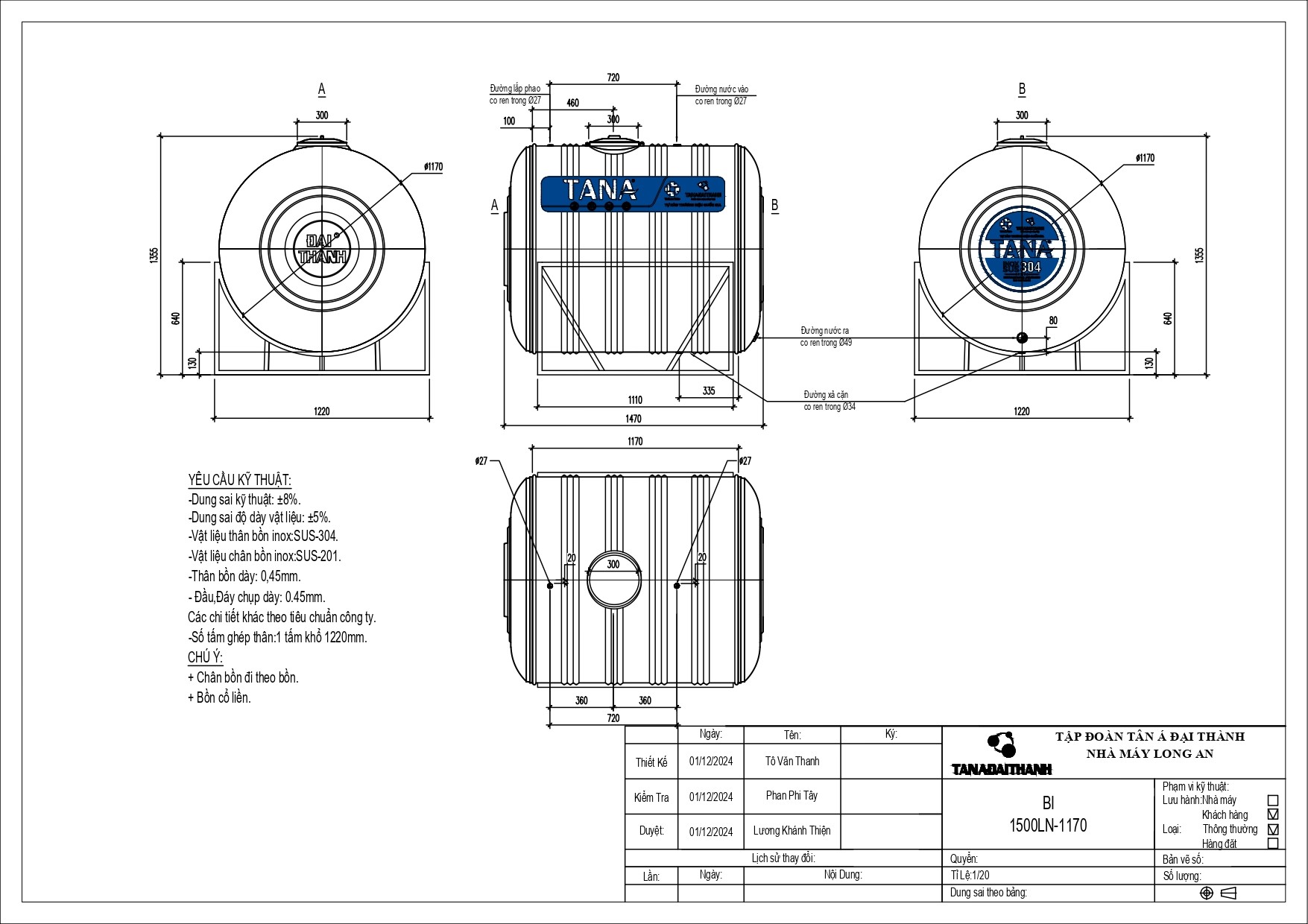 Đặc biệt bồn nước Inox công nghiệp có dung tích từ 10.000 đến 30.000 lít được chế tạo trên dây chuyền máy móc thiết bị tiên tiến nhất thế giới khẳng định được chất lượng sản phẩm đáp ứng nhu cầu sử dụng cho các khu chung cư cao tầng và nhà máy công