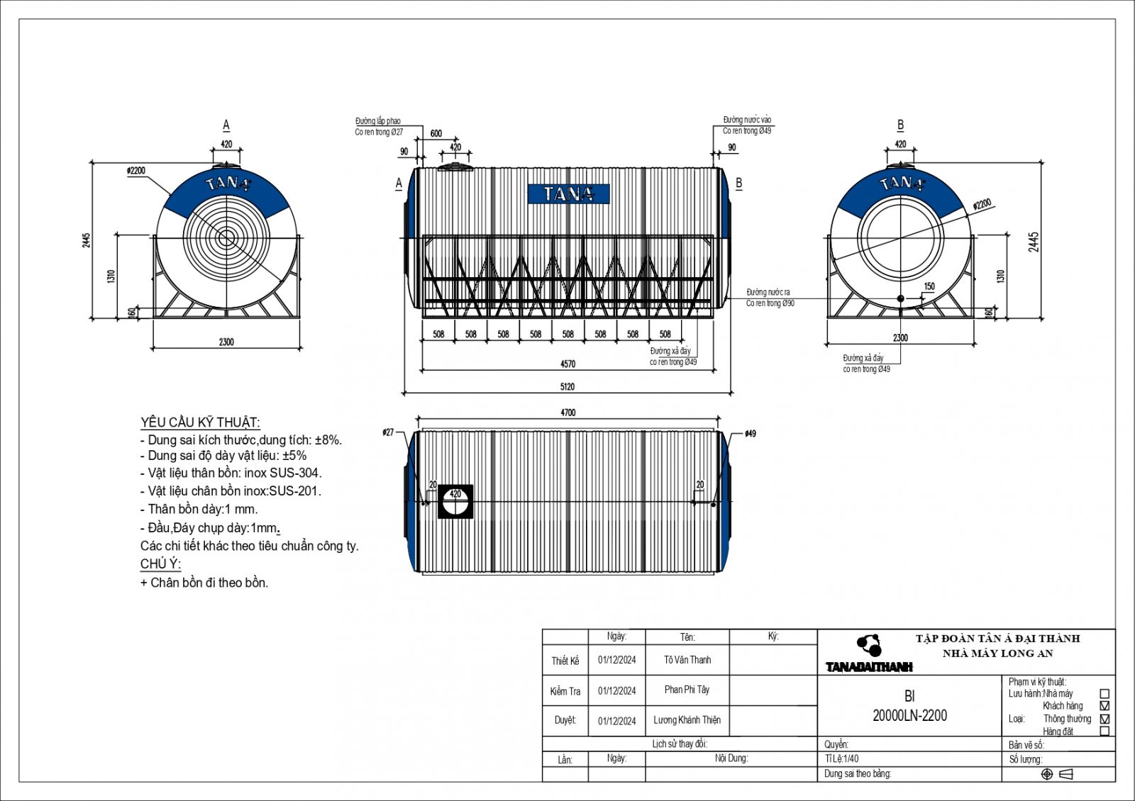 • Bồn nước Inox Tân Á
