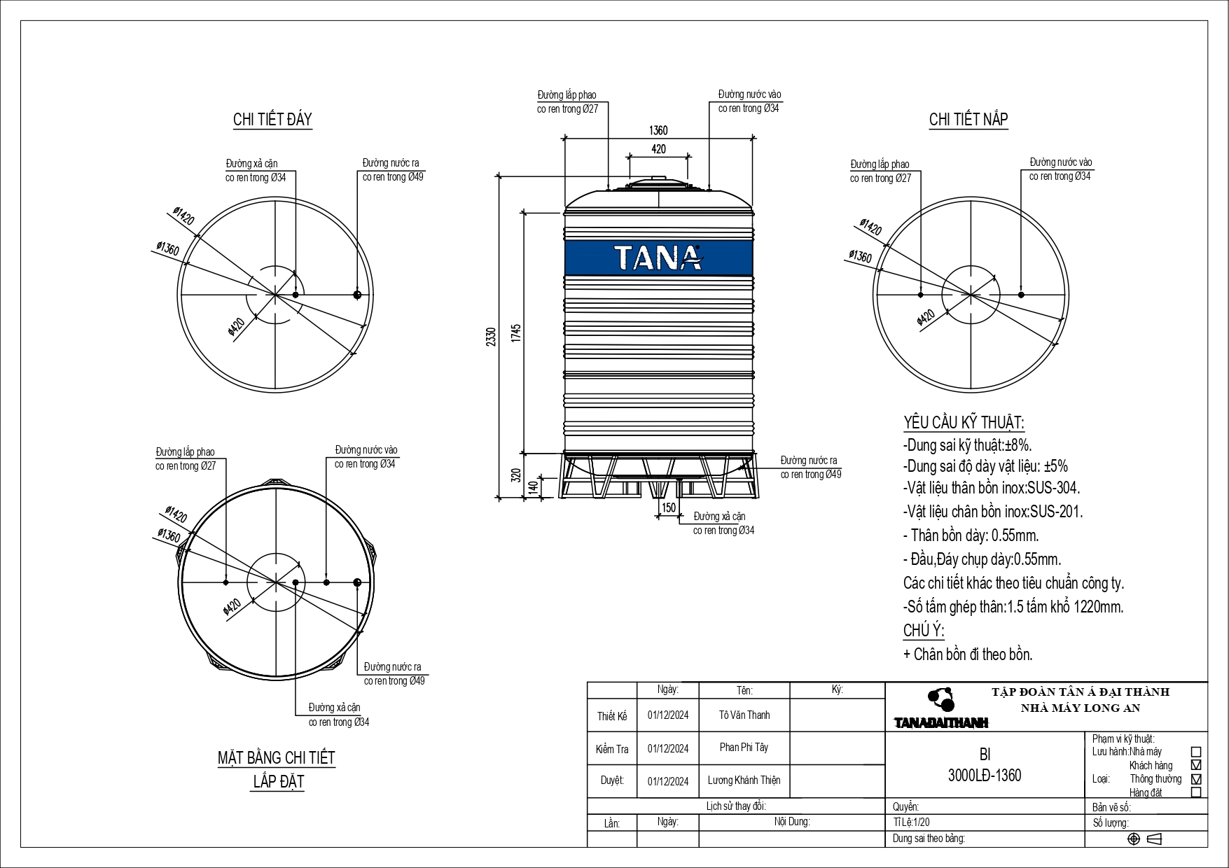 BỒN INOX TÂN Á 3.000L ĐỨNG