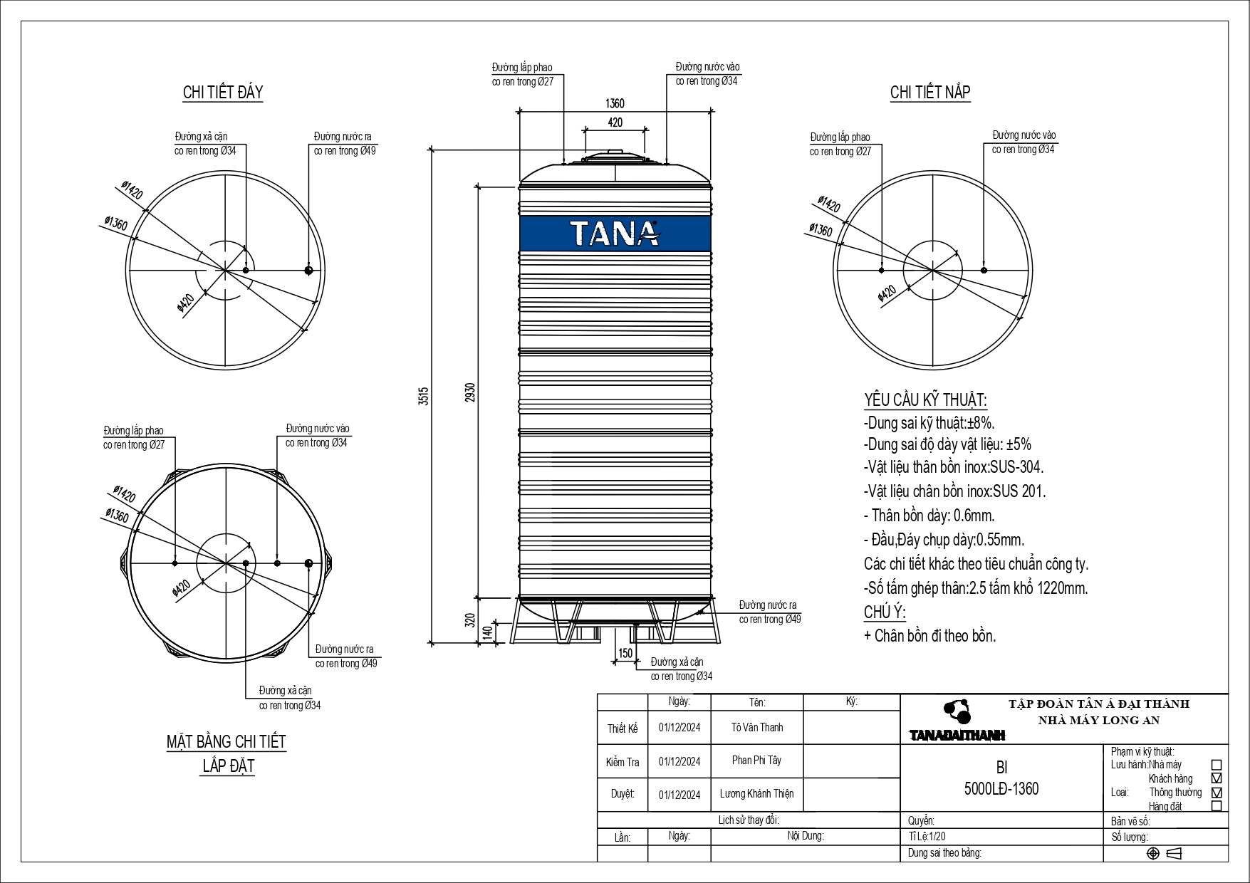 BỒN INOX TÂN Á 5.000L ĐỨNG