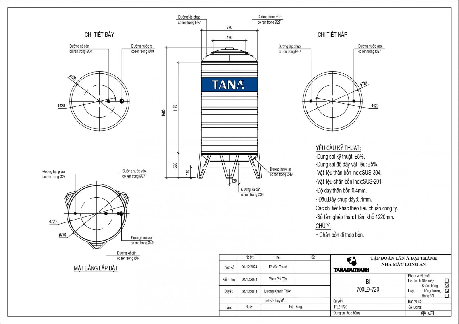 BỒN INOX TÂN Á 700L ĐỨNG