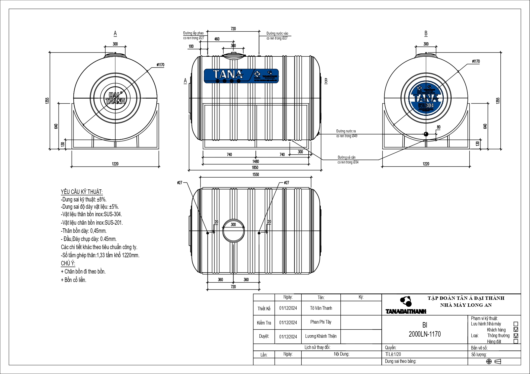 Đặc biệt bồn nước Inox công nghiệp có dung tích từ 10.000 đến 30.000 lít được chế tạo trên dây chuyền máy móc thiết bị tiên tiến nhất thế giới khẳng định được chất lượng sản phẩm đáp ứng nhu cầu sử dụng cho các khu chung cư cao tầng và nhà máy công